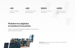 Un design sobre et haut de gamme, avec une esthétique minimaliste qui tranche avec les sites juridiques classiques souvent austères. Des animations subtiles avec Framer Motion donnent vie au parcours sans surcharger l'expérience.